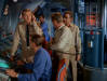 Nelson and Chip look up as Admiral tells Lee they're making repairs and