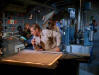 repairing the computer, soldering wires. Tells Nelson that he's still